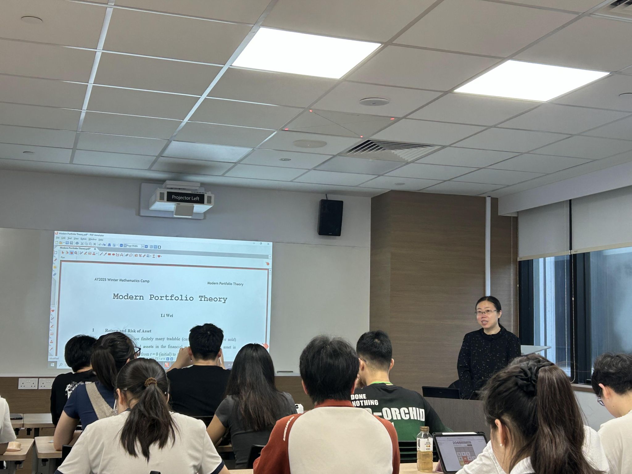 在之后的课程中,新加坡国立大学的十余位优秀教师讲授了众多学科前沿课程,在深度学习、现代投资组合理论、逆数学、博弈论、密码学、数论、概率论、数据科学、数据建模、遍历理论等数学学科及交叉学科方面进行了细致有趣的讲解。课程设计聚焦前沿而不失深度,名师讲解深入浅出而幽默风趣,各种课堂小实验大大提高了学生的课堂参与度,同学们与老师积极互动,乐在其中,收获满满。