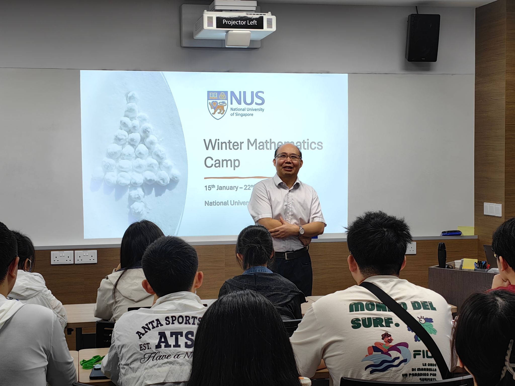 1月15日,“智慧数理”寒假研学项目课程讲授正式开始,新加坡国立大学理学院助理教授王飞老师主持开营仪式,希望同学们在新加坡国立大学学到本领,收获友谊。新加坡国立大学理学院副院长包维柱教授为同学们做了欢迎演讲,对同学们的到来表示热烈的欢迎和衷心的期许,祝愿同学们在接下来的课程中有所收获,学以致用,也希望在新加坡的研学之旅能为同学留下难忘的回忆。