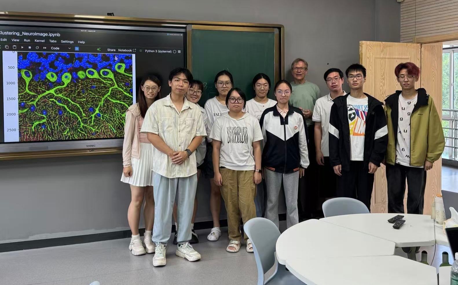 四天的课程中,Baier教授以幽默生动的授课风格打破了跨语言教学的壁垒。他坚持理论讲解与代码实操相结合,通过实时调试Python程序让抽象概念具象化;针对学生提出的技术疑问与学术思考,始终给予耐心细致的解答,课堂互动氛围活跃。参与学生表示,通过课程不仅系统掌握了脑电数据的分析方法,更深化了对Python工具在医学数据建模中应用的理解,为后续跨学科研究奠定了基础。